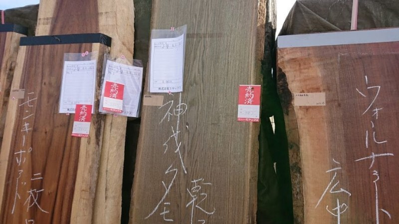 欅、杉、ヒノキ、メープル、ウォールナット各種入荷しました。コンパクトなサイズ約100×270から特大サイズ約400×270までコンパクトサイズはアウトドア使いにおすすめです。
