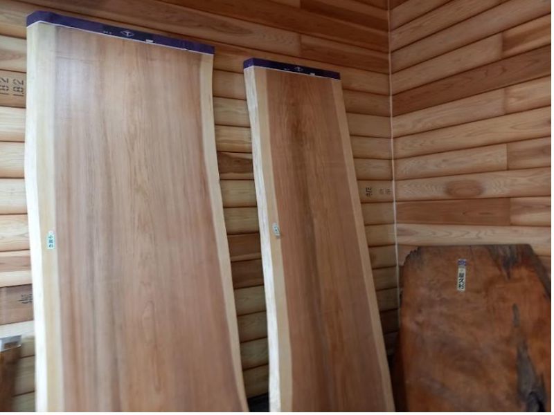 欅、杉、ヒノキ、メープル、ウォールナット各種入荷しました。コンパクトなサイズ約100×270から特大サイズ約400×270までコンパクトサイズはアウトドア使いにおすすめです。