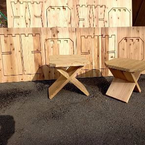 無垢ボードに加工されたパーツをプラモデルのように切り離して木口をサンダー・やすり等で仕上げます。オスモカラーで塗装も可能です。